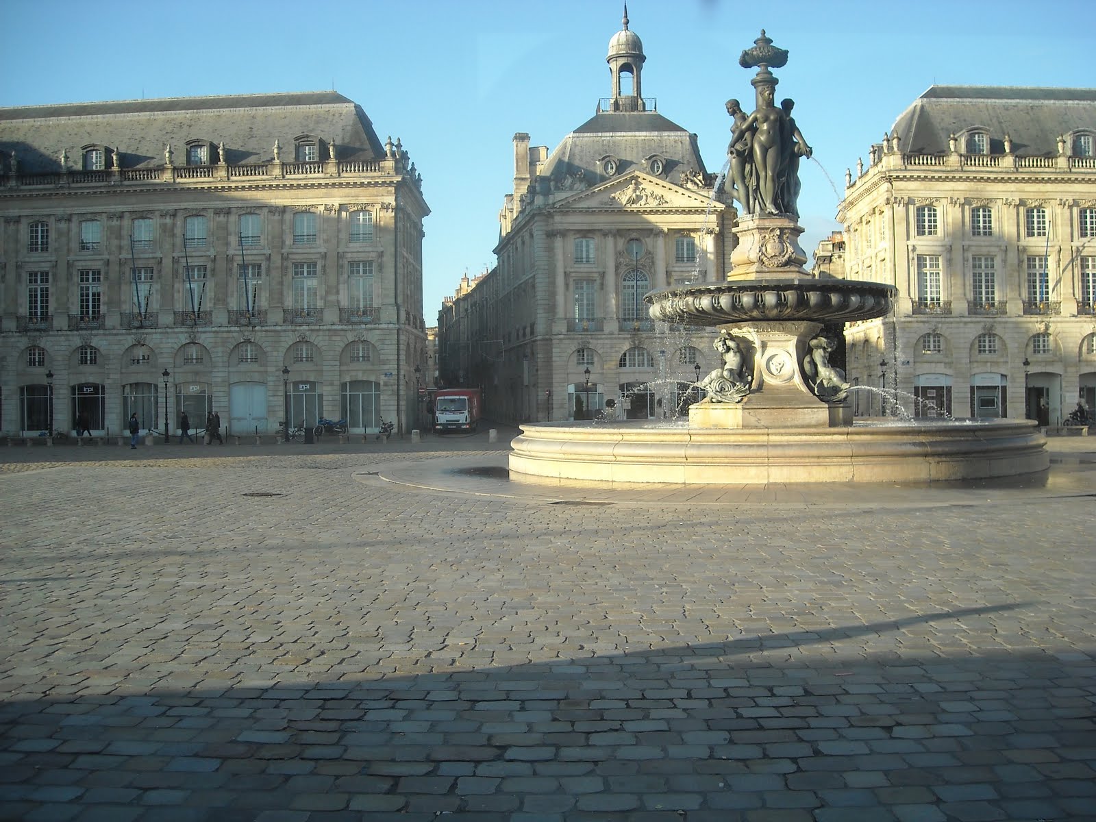 La ciudad está repleta de edificios señoriales (izquierda, Place de la Bourse). Hace unos siglos la ciudad era la capital económica de Francia por un negocio muy rentable: aquí desembarcaban los esclavos procedentes de las colonias de ultramar, por lo tanto el mercadillo semanal siempre estaba petao y dejaba bastante dinerín, y como no había teléfonos móviles de última generación ni coches de lujo sólo podían ostentar haciéndose edificios caros, y de tantos que construyeron pues al final resultó que la ciudad parece cualquier capital imperial. Como no tenían bastante con sus propias casas también se aplicaron bien en cuanto al «mobiliario urbano» de la época: tienen obeliscos, fuentes, estatuas, y varias puertas de esas que no sirven para nada pero que alguien mandó construir en conmemoración de cualquier tontería. (abajo a la izquierda, Place Victoire, a la derecha Porte de Bourgogne)